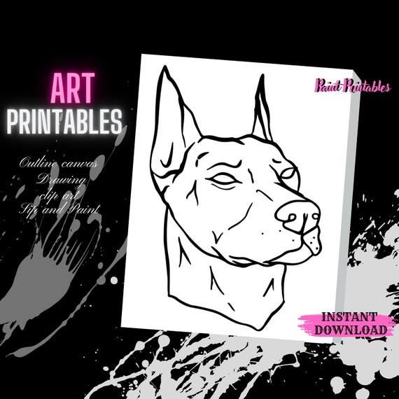 Doberman Printables Images Dog Paint And Sip Canvas Coloring Etsy Denmark